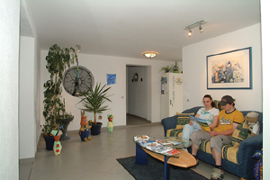 | Nicht nur in unseren gemütlichen Zimmern sondern auch in userem Aufenthaltsraum haben Sie eine gemütliche Nische zum Entspannen oder auch zum morgentlichen Zeitungslesen. |