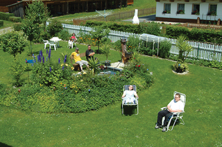 | Nichts in der Welt ist so ansteckend wie lachen und gute Laune! Auf der Terasse oder Liegewiese können Sie in aller Ruhe Sonne tanken. Zur Abkühlung geht es ins Kneippbecken. |