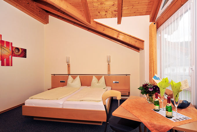 Wochenpreis für Übernachtung mit Frühstück p. Pers.: 350,- € Doppelzimmer Typ B Das Doppelzimmer mit Balkon (auch als Einzelzimmer buchbar), ca. 20 qm,